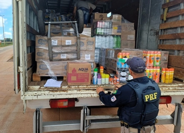 Carga misturava alimentos, itens de higiene e substâncias químicas, colocando em risco a saúde dos consumidores. - Foto: PRF